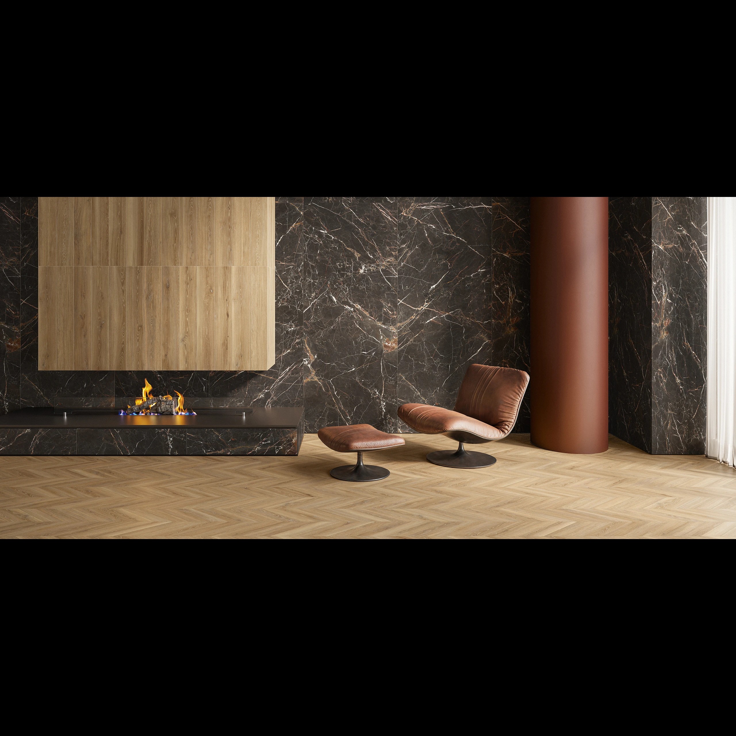 The stone’s naturally polished finish enhances its rich color palette, allowing light to subtly reflect and accentuate the intricate veining patterns. When used as wall cladding, Armani Grey creates a bold yet refined backdrop that elevates spaces without overwhelming them. Its dark, moody tones pair beautifully with warm materials such as wood, leather, and metal, making it a favorite choice for luxury living rooms, feature walls, fireplaces, hotel lobbies, and executive spaces.
