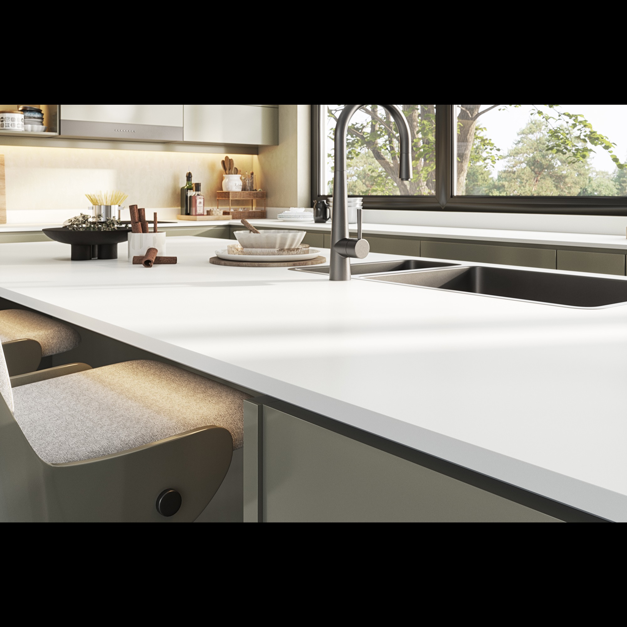The non-porous engineered quartz surface prevents bacterial growth, making it a safe and hygienic option for food preparation areas.