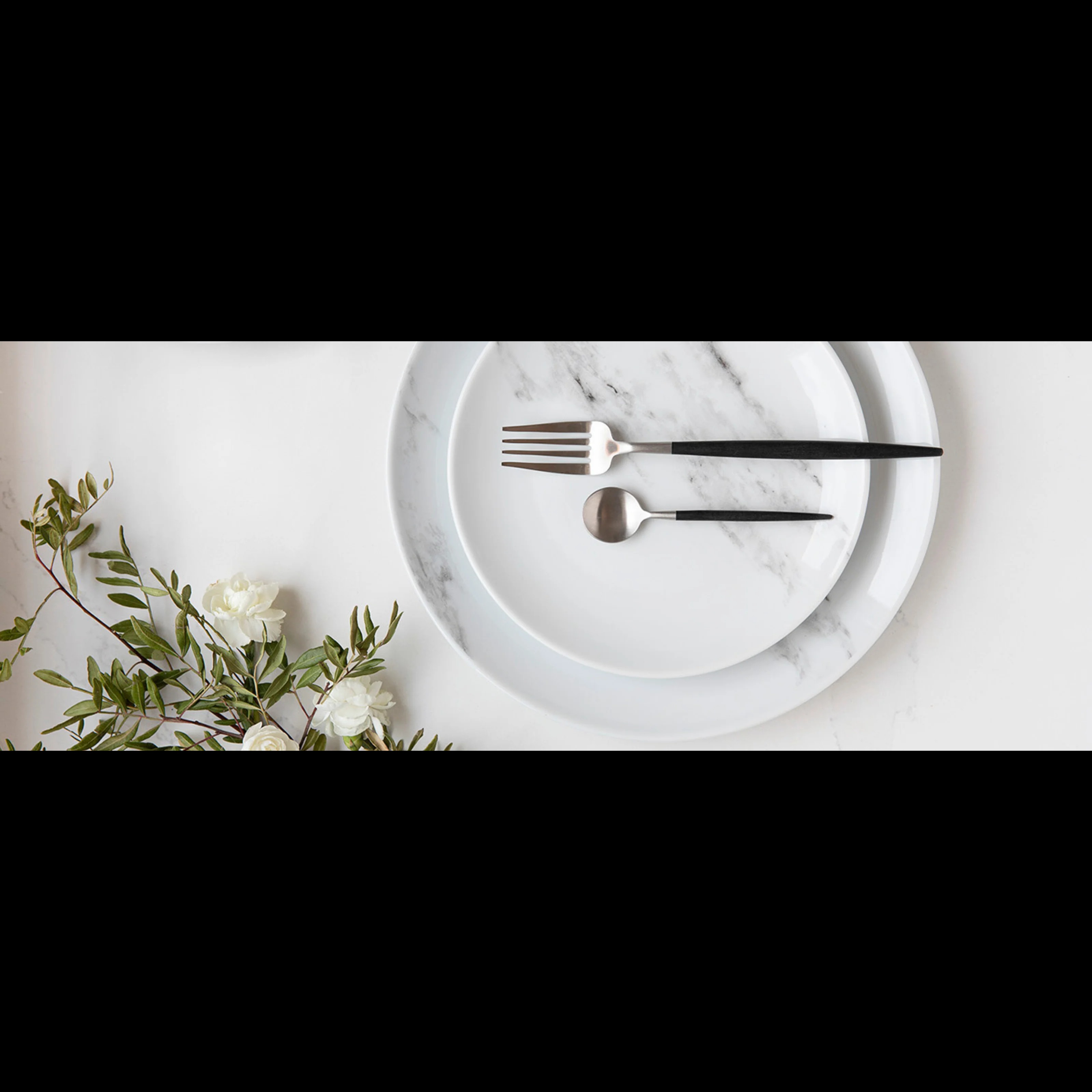 Each marble plate is carved from a single slab of authentic stone, ensuring no two pieces are ever identical. The gentle veining patterns flow organically across the surface, creating a refined, luxurious aesthetic that complements both contemporary and classic table settings. The smooth, polished finish enhances the natural texture while providing a sleek, elegant look.