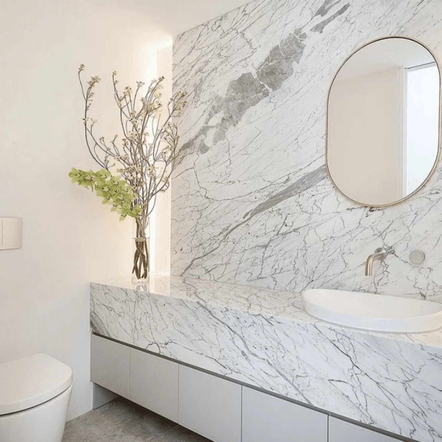 Statuario Marble is a globally renowned natural stone, prized for its pristine white base and bold, flowing grey veining. Quarried exclusively from the Carrara region of Italy, Statuario represents the epitome of luxury and classic beauty. Each slab is unique, combining intense whiteness with deep, striking patterns that make it ideal for creating an elegant and powerful visual impact.